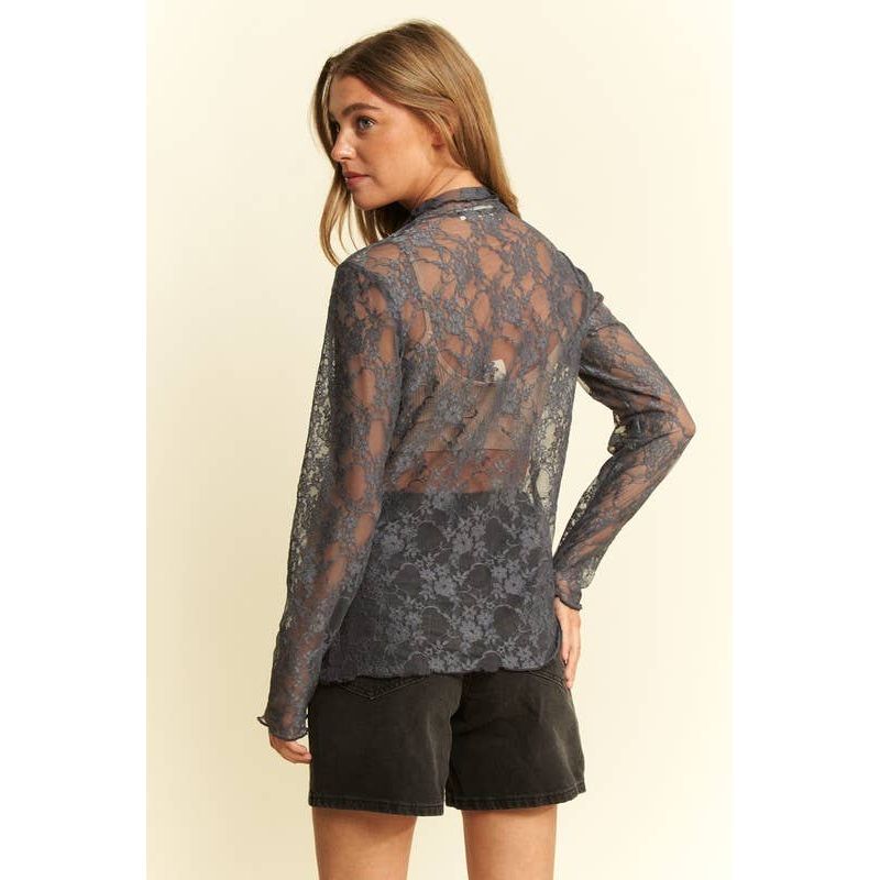 This stylish top features a mock neck and floral print lace long sleeves, with a mesh fabric that has a good amount of stretch. Made with 90% nylon and 10% spandex, it's comfortable and perfect for any occasion.