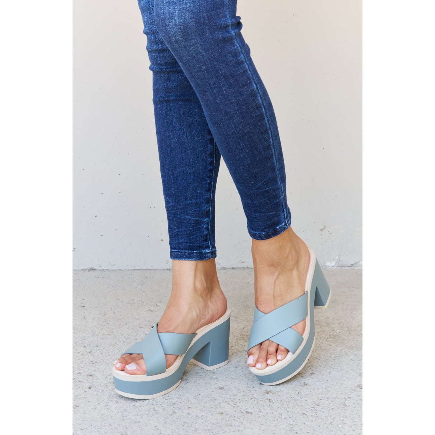 Weeboo Cherish The Moments Contrast Platform Sandals in Misty Blue